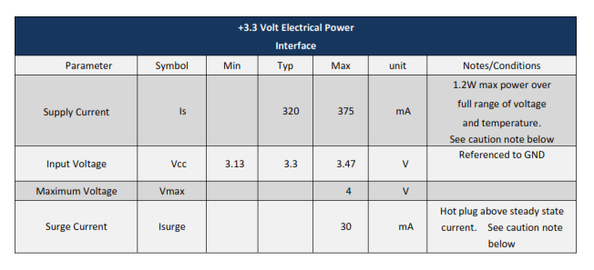 Caution: Power consumption and surge current are higher than the specified values in the SFP MSA