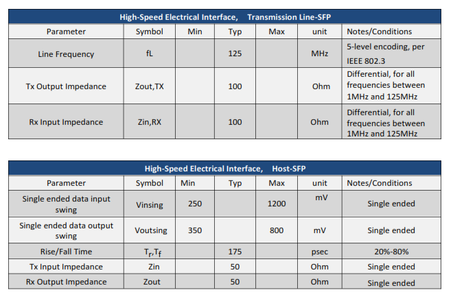 SFP-1000BASE-T/SFP-1000BASE-T-SGMII Copper Small Form Pluggable (SFP) transceivers are based on the SFP Multi Source Agreement (MSA) . They are compatible with the Gigabit Ethernet and 1000BASE-T standards as specified in IEEE Std 802.3 . The 1000BASE-T physical layer IC (PHY) can be accessed via I2C, allowing access to all PHY settings and features.